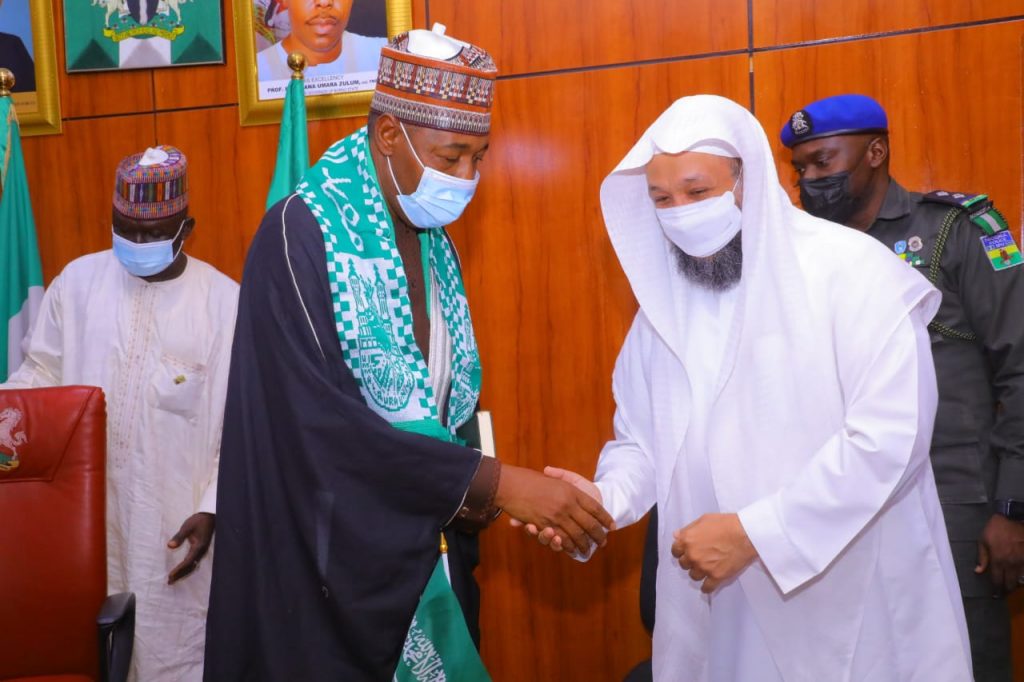 NEWSDAILYNIGERIA– Prof. Hassan Abdulhamid Bukhari, a Saudi academic and one of the Imams leading congregational prayers at the Holy Ka’ba (masjid Al-Haram) in Makkah, has paid a visit to Borno Governor, Professor Babagana Umara Zulum.