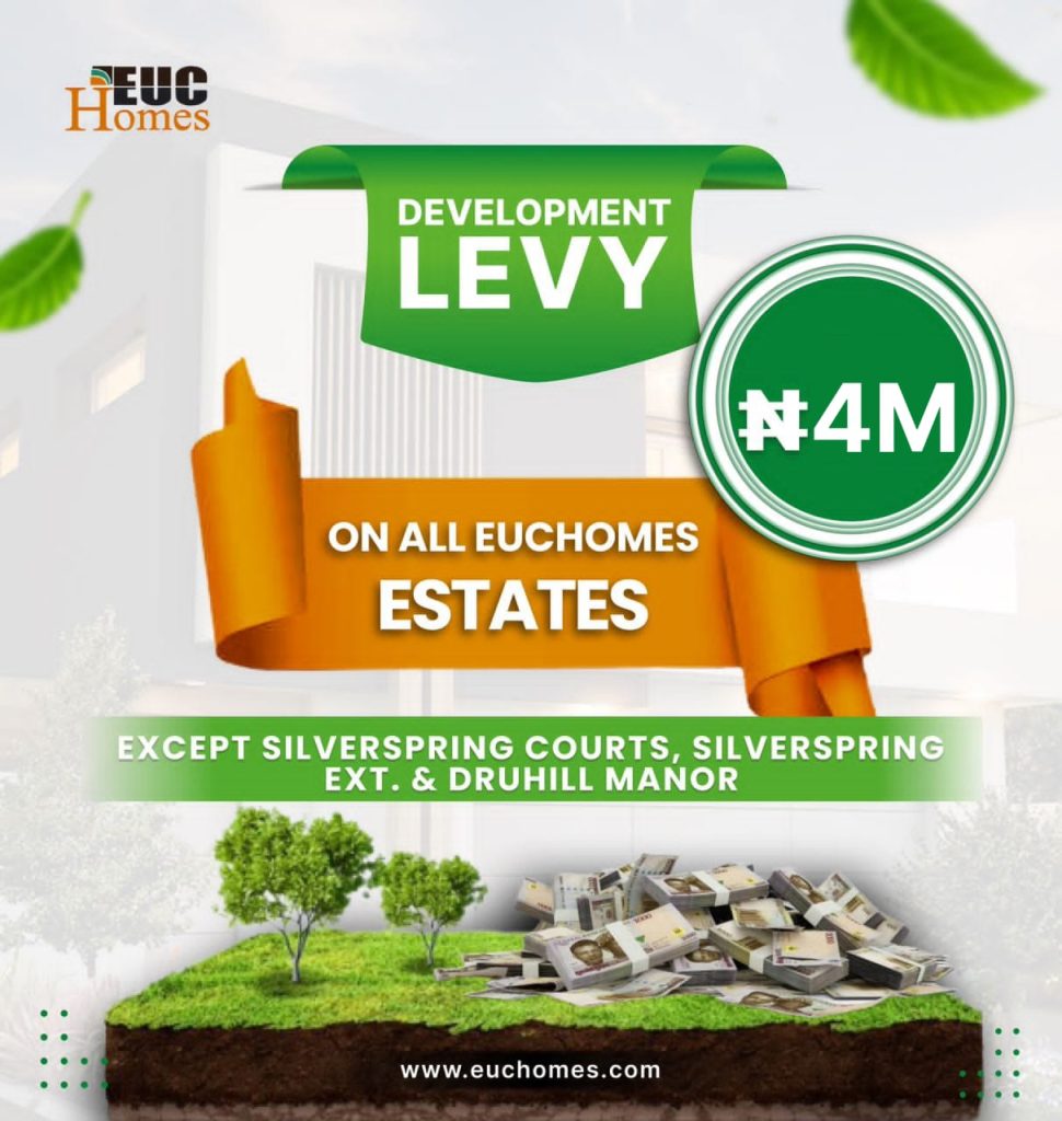 NEWSDAILYNIGERIA: The management of EuC homes Ltd is pleased to announce to customers, partners and consultants that development levy will now be 4 million with exemption of the silver spring courts, silver spring Extension and Druhill manor with effect from 29th February, 2024