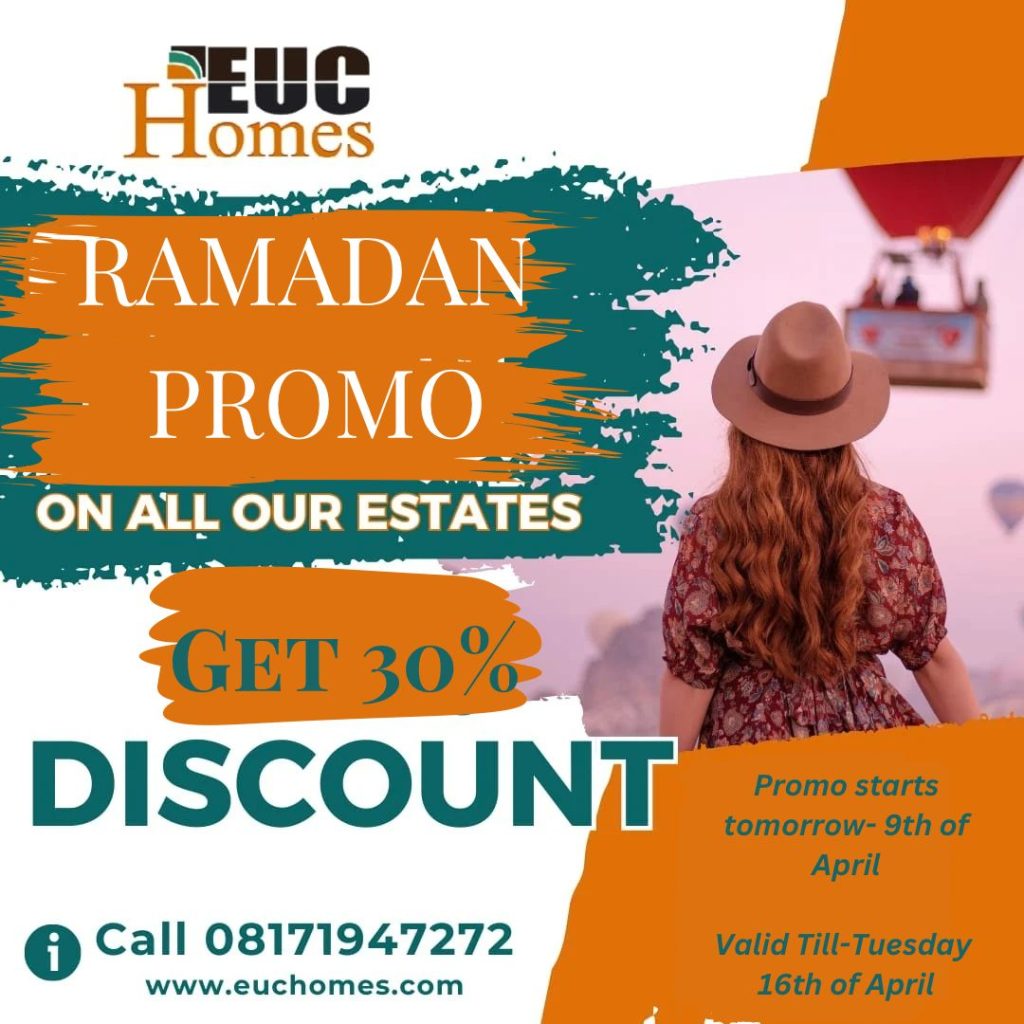NEWSDAILYNIGERIA: The management of EUC Homes has announced discount of 30% in the price of all her estates as her Ramadan giveaway for clients and customers.